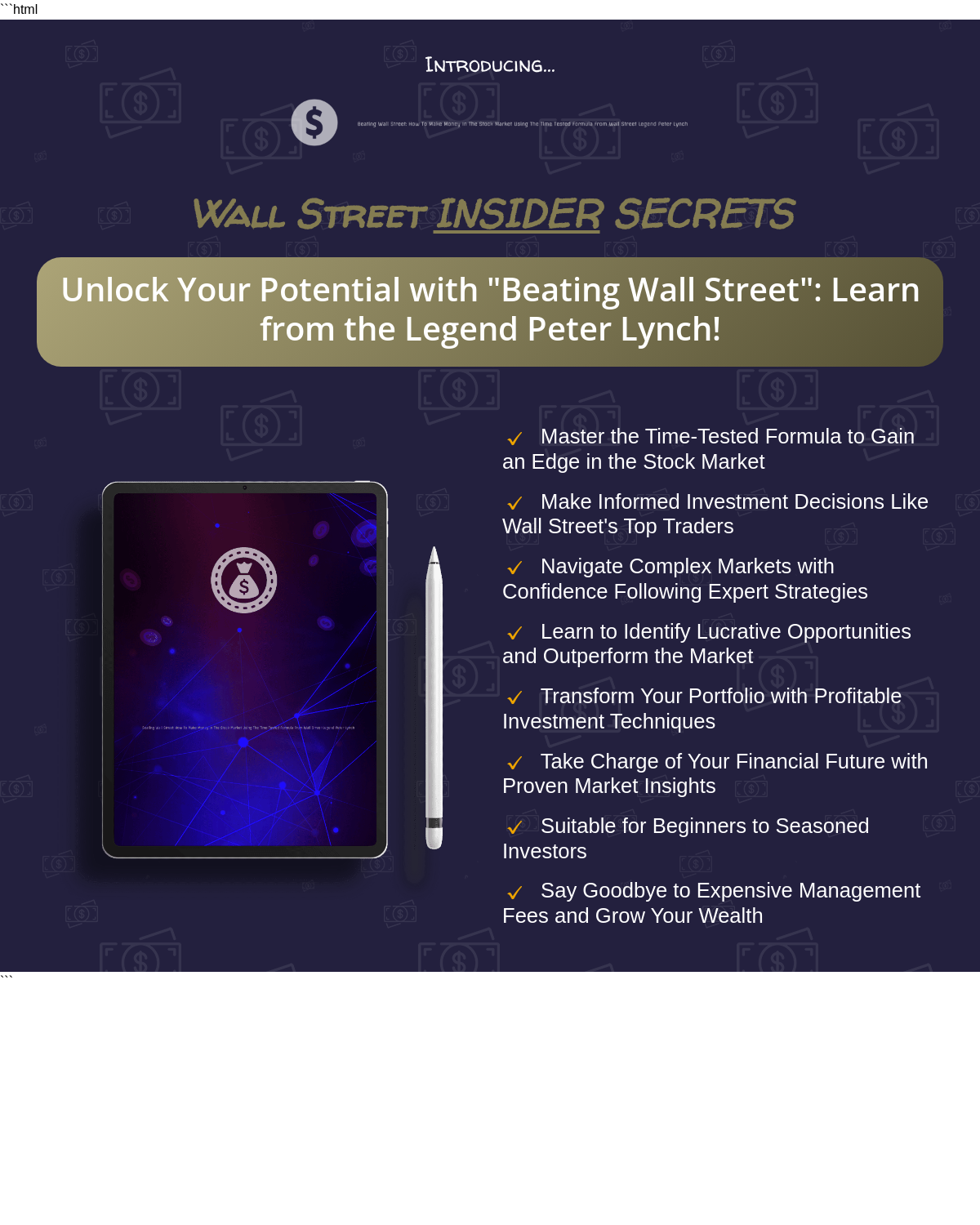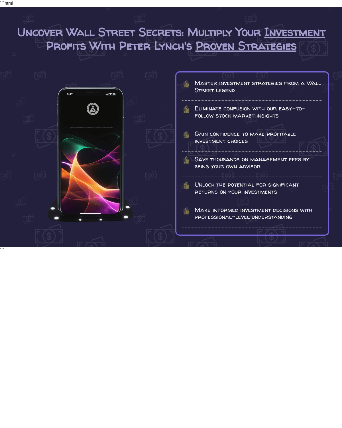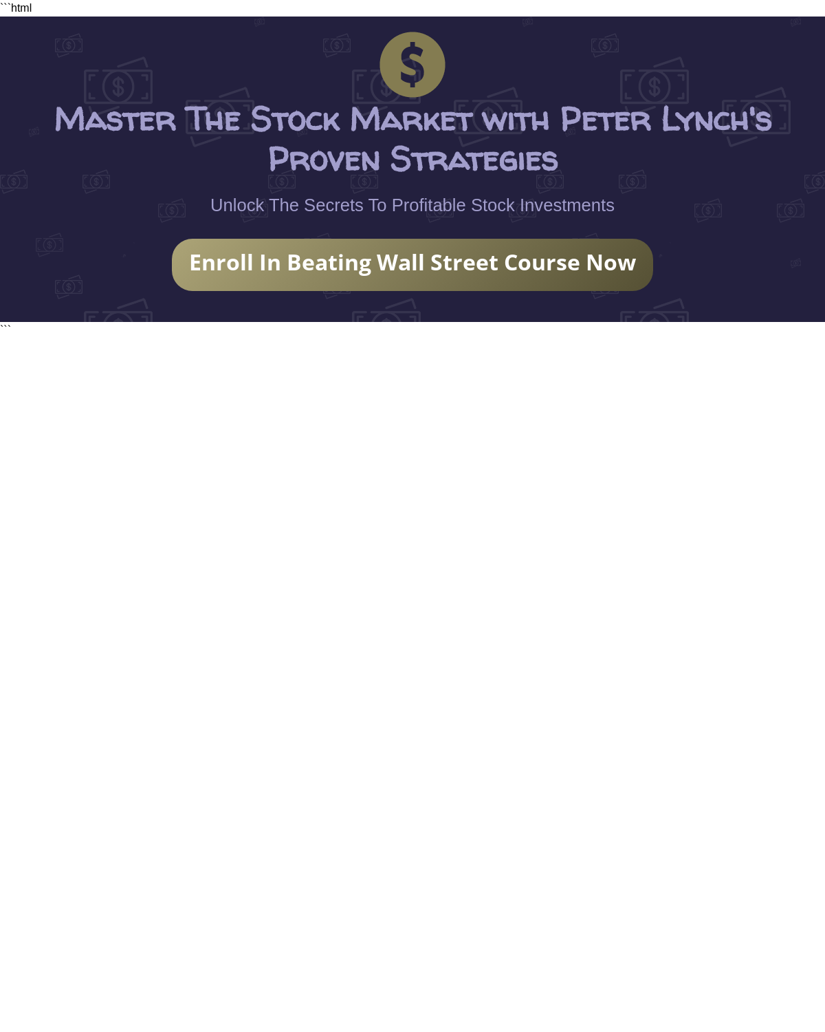 Index of /Beating Wall Street: How To Make Money In The Stock Market Using The Time Tested Formula From Wall Street Legend Peter Lynch/screens/